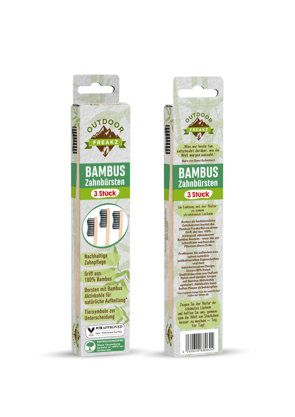Outdoor Freakz bambusz fogkefe aktív szenes sörtével 3 db
