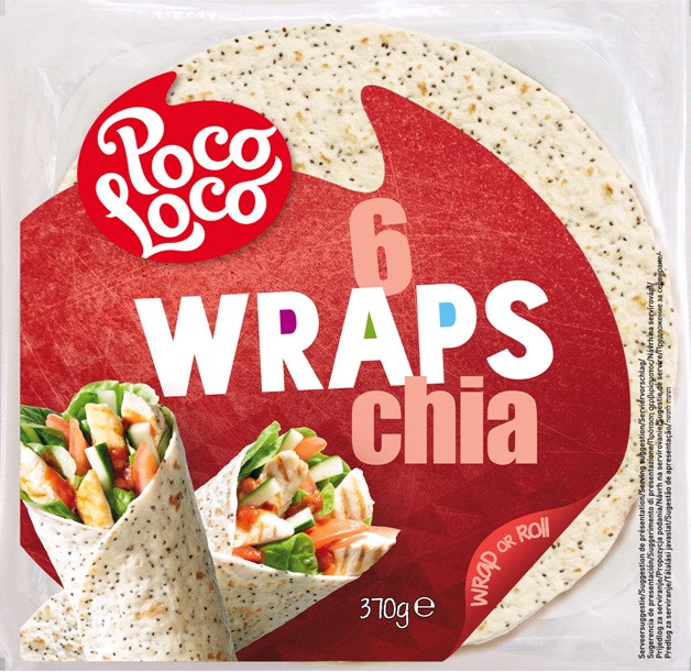 Összetevők: BÚZALiszt (63%), víz, repceolaj, stabilizátor: E422; chia mag (4%), szőlőcukor, sav: E296; térfogatnövelő szer: E500; só, tartósítószer: E282, rizs kivonat. 6x25cm