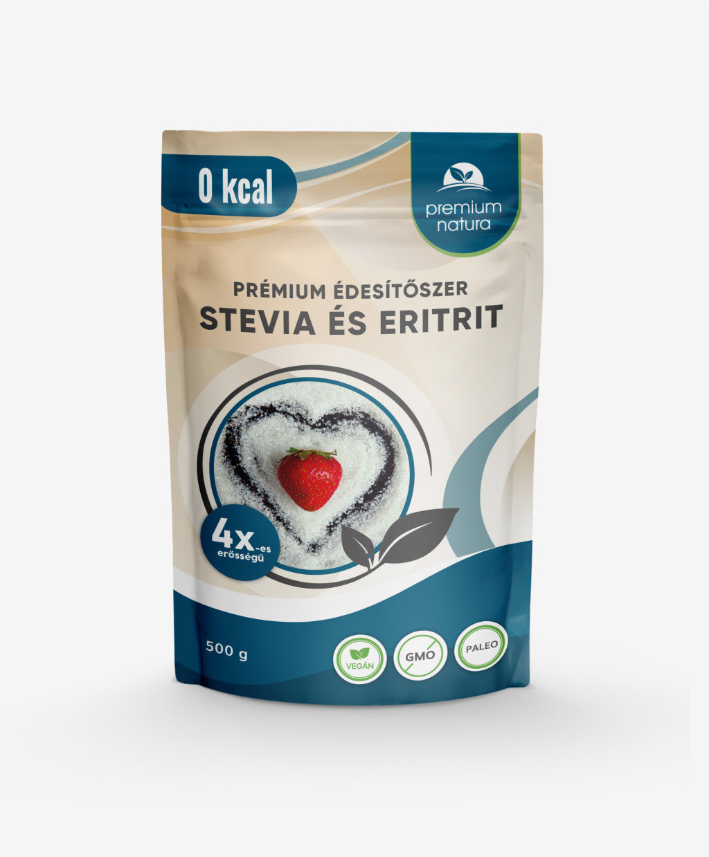 Eritrit és prémium stevia keverékéből készült édesítőszer.
