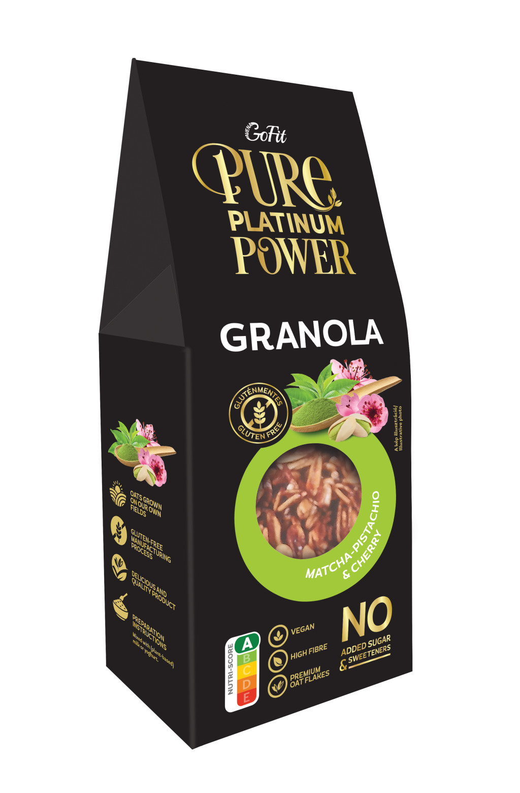 Pure Platinum Power granola gluténmentes matcha-pisztácia-cseresznyés 225 g