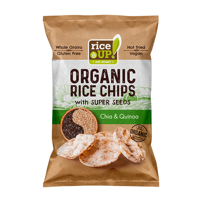 Vegán és gluténmentes összetevői egytől egyig ellenőrzött ökológiai gazdálkodásból származnak. A rizs chips a hagyományos chipsek zsírtartalmának mindössze felét tartalmazza.  Fogyaszthatjuk önmagában vagy sós, édes ízekkel gazdagítva. Mivel jelölendő allergénektől mentes és a cukor tartalma is alacsony valamennyi diétában megállja a helyét.