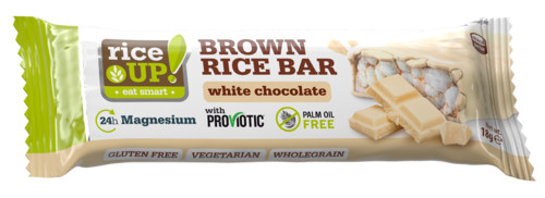 Rice Up puffasztott barna rizsszelet fehércsokis bevonattal.