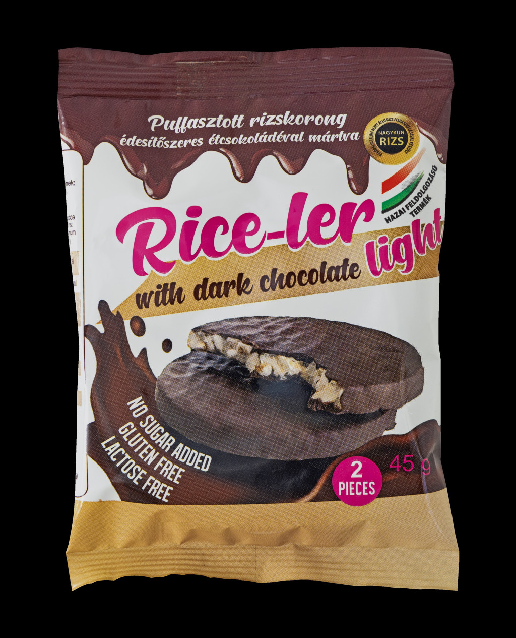 Rice-ler puffasztott rizskorong édesítőszeres étcsokoládéval mártva 45 g