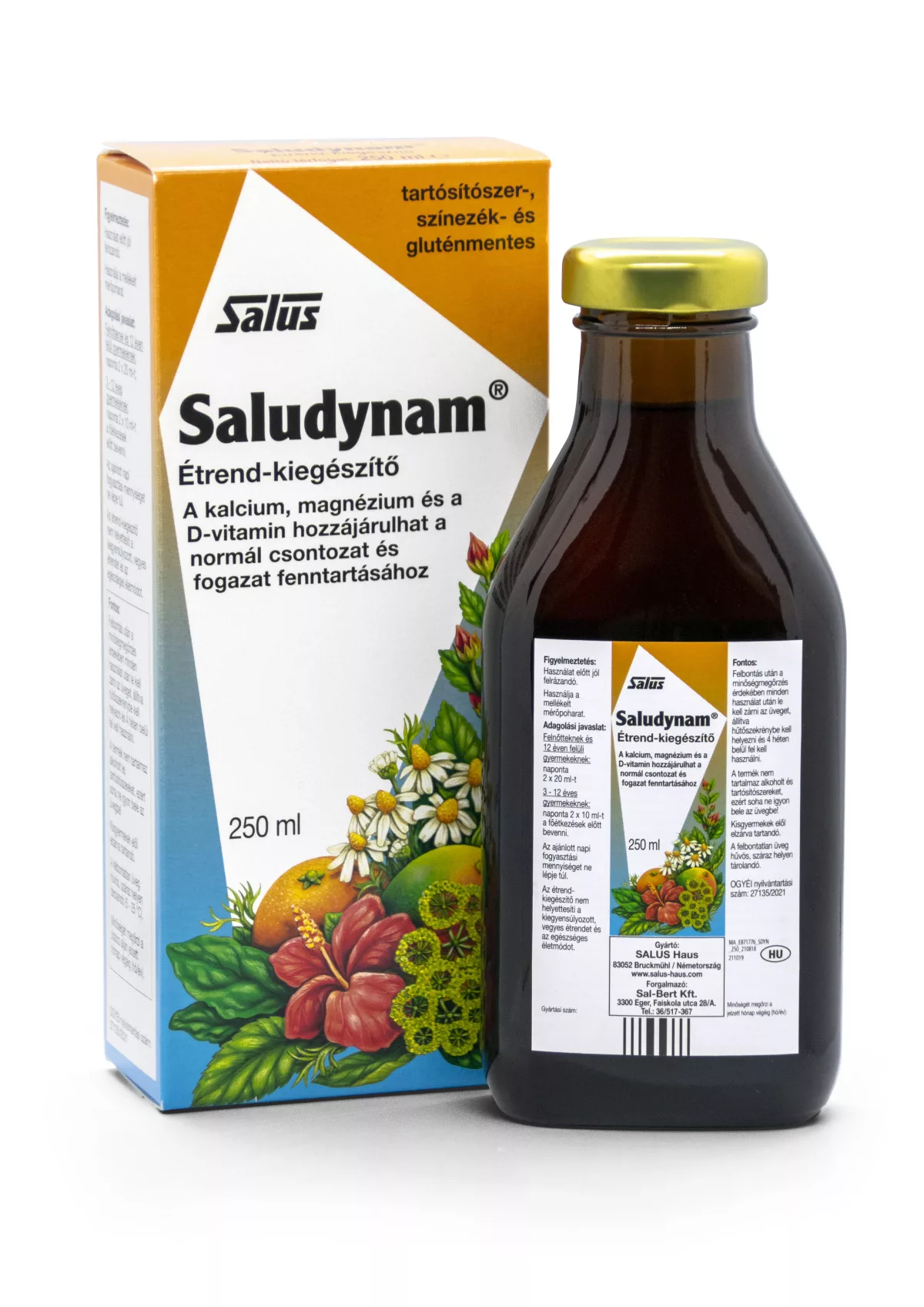 A Saludynam kalciumot, magnéziumot, D vitamint és cinket tartalmaz, melyek hozzájárulhatnak a csontok és a fogak megfelelő fejlődéséhez és megőrzéséhez. A D-vitamin segítheti a kalcium és a foszfor felszívódását és hasznosulását, valamint a vér normál kalcium szintjének fenntartását. A termék folyékony állagának köszönhetően könnyen bevehető, segíthet biztosítani a kalcium, magnézium, cink és a D vitaminok egyensúlyát. Számos gyümölcs kivonatát, valamint válogatott növényi kivonatokat tartalmaz a kellemes ízhatás érdekében. Ajánlott nőknek, serdülőkorúaknak, idősebbeknek, sportolóknak és mindazoknak, akiknél ezen összetevők hiánya fennáll. Várandós és szoptató édesanyák is szedhetik. Nem tartalmaz alkoholt, tartósítószert, mesterséges színező– és aromaanyagokat. Gluténmentes, laktózmentes, vegetáriánusok számára is alkalmas.