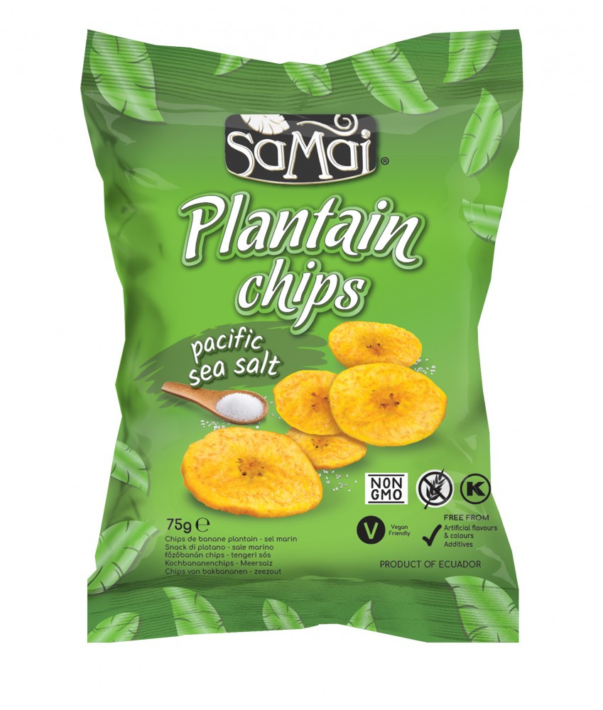 A SAMAI Plantain chips prémium minőségű főzőbanánból készül, melyet Dél-Amerika csendes-óceáni partján, Ecuadorban helyi farmerek termesztenek.