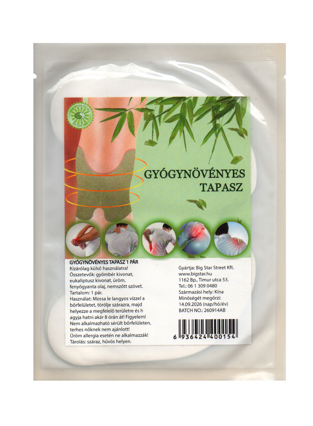 Alkalmazási javaslat: Mossa le, törölje szárazra a kezelni kívánt felületet, majd helyezze fel a tapaszt és hagyja hatni 8 órán át.