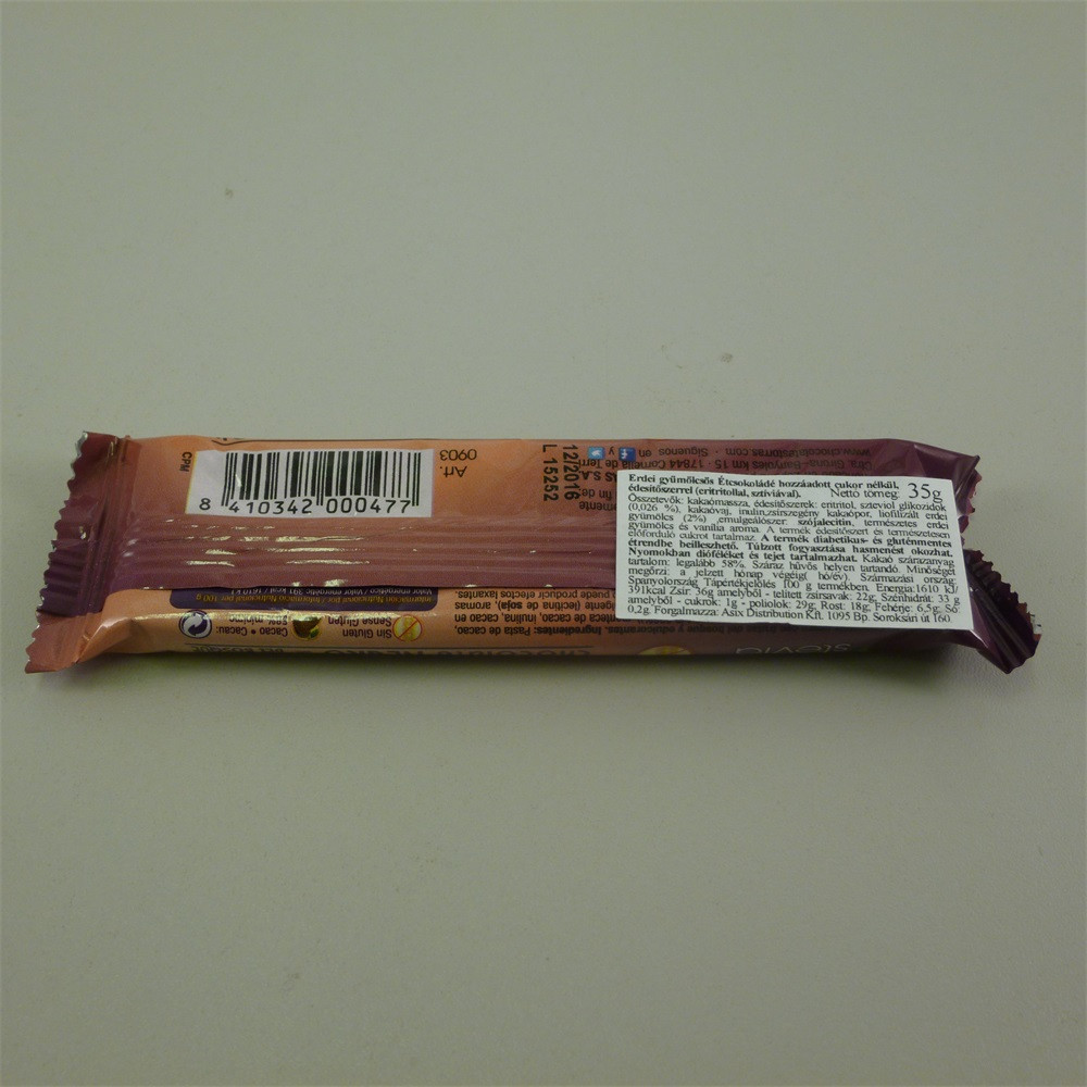 Összetevők: Kakaó massza, édesítők: eritritol, szteviol glikozidok, kakaóvaj, inulin, zsírszegény kakaópor, liofilizált erdei gyümölcs 2%, emulgeálószerek: szójalecitin, természetes erdei gyümölcs és vanília aroma.