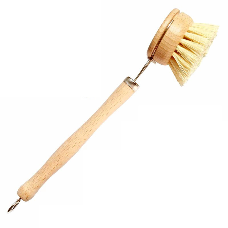 Fanyelű mosogatókefe növényi rostból készült sörtékkel, cserélhető fejjel. 100% lebomló és szelektálható anyagokból készült, vegán, hulladékmentes mosogatóeszköz. A fej átmérője: 6 cm, a termék hossza fejjel együtt: 24 cm. A nyél fej felőli végén végén található egy fém pánt, ami szorosra húzza a foglalatot a fej körül. Ezt hátra kell húzni, így meglazul a foglalat, és ki lehet cserélni a fejet. Ezután csak újra szorosra kell húzni a pántot, és kész is a csere. Használat után hagyjuk kicsöpögni, kiszáradni.