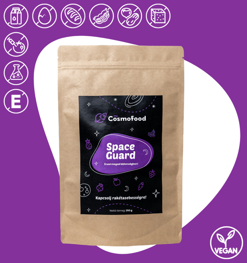 A Space Guard könnyen beilleszthető bármely diétába, mivel GMO, glutén, tej, tojás és szója mentes, nem tartalmaz hozzáadott cukrot és édesítőt, valamint semmilyen tartósítószert vagy adalék anyagot sem!  Vegán, nyers vegán, paleo!