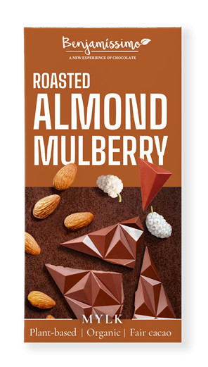 Benjamissimio bio vegán kókuszos csokoládé pörkölt mandulával, fehér eperrel 60 g (Gluténmentes)