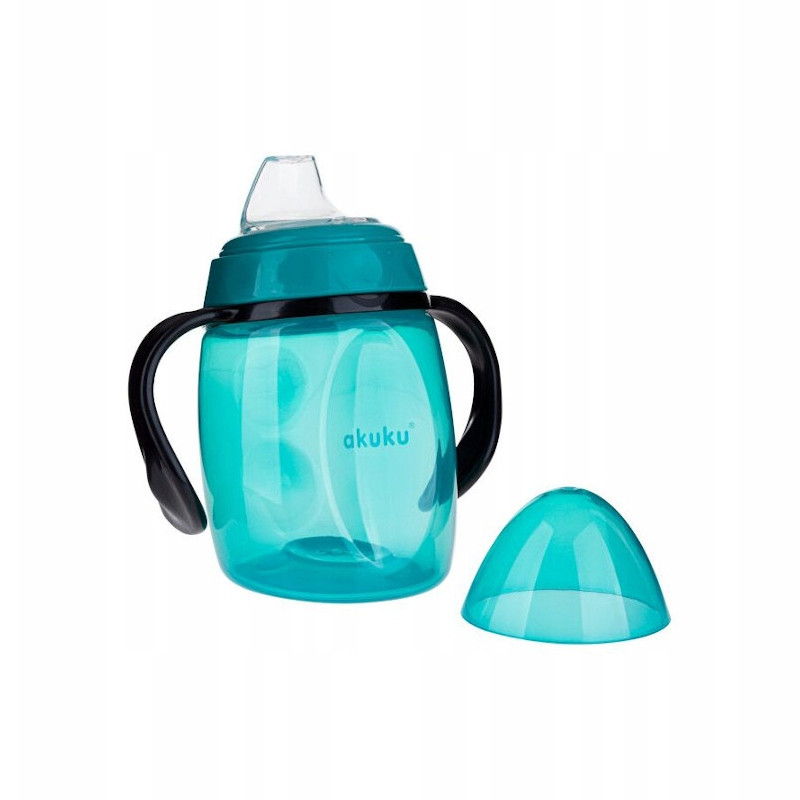 Akuku Tanulópohár szilikon itatócsőrrel+pótcsőrrel, türkiz-fekete